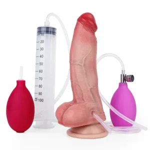 8.1 IN Ejaculating and Inflatable Silicone Dildo Squirting Penis Toy