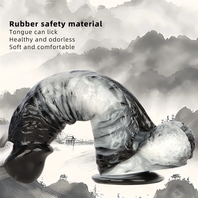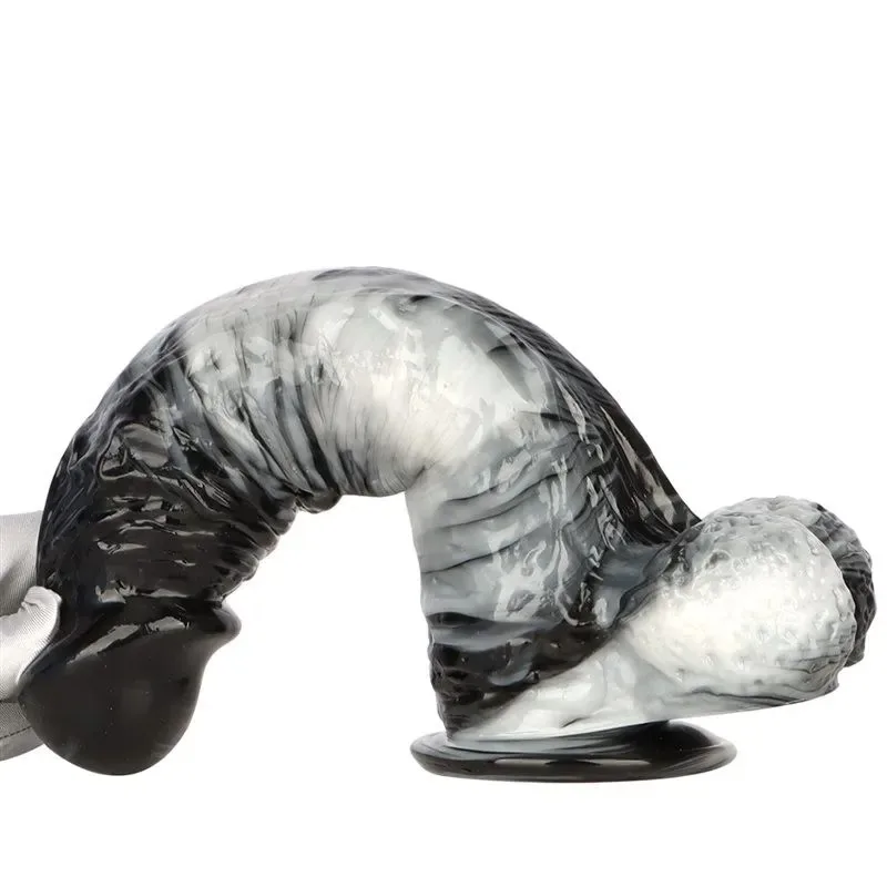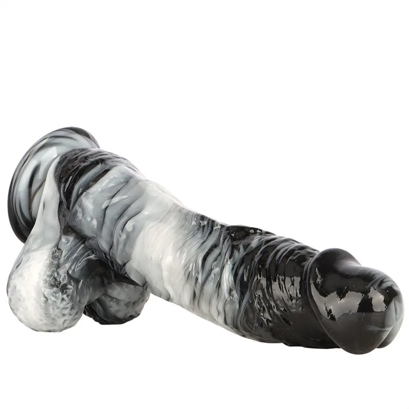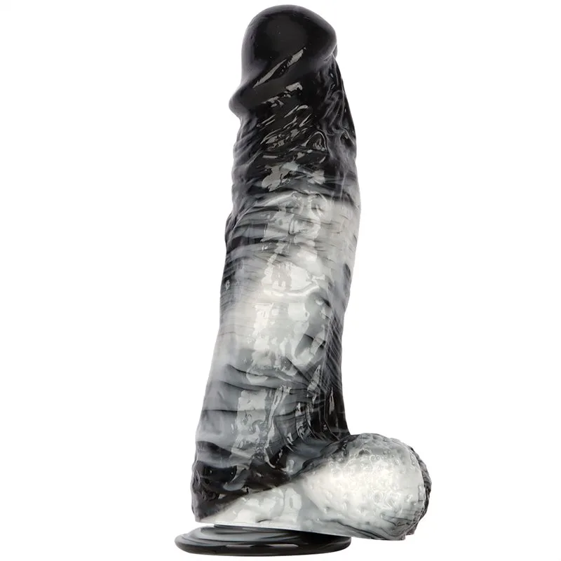 12 Inch Long 2.6 Inch Wide Large Black-and-White PVC Realistic Dildo