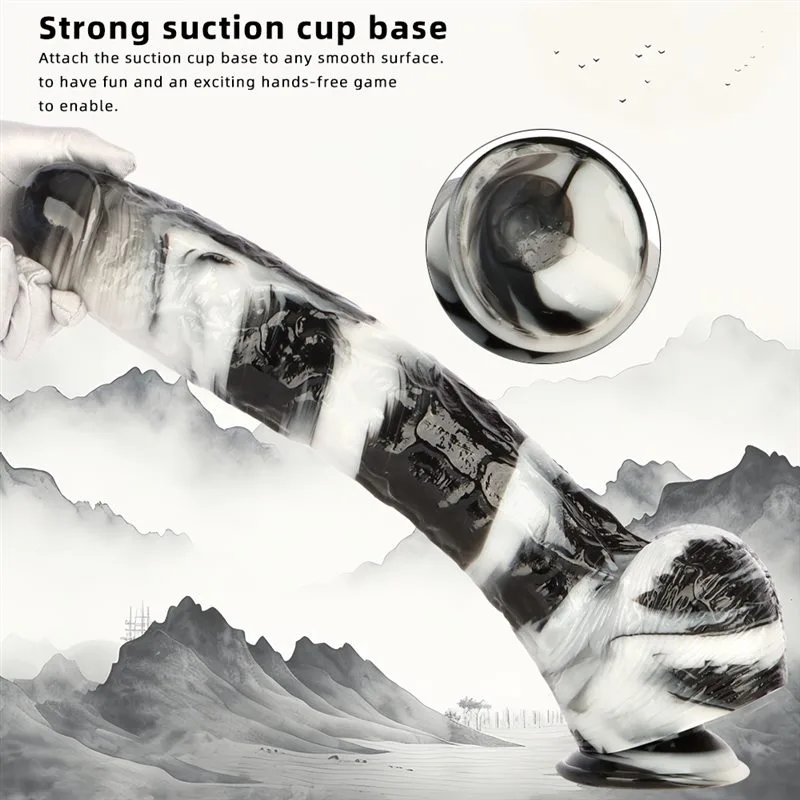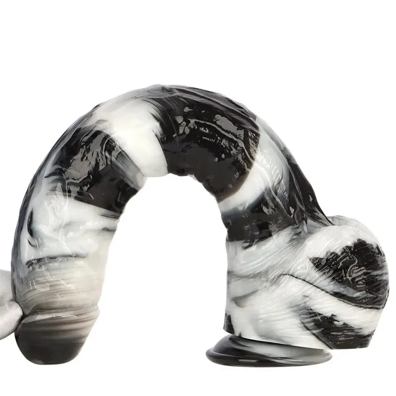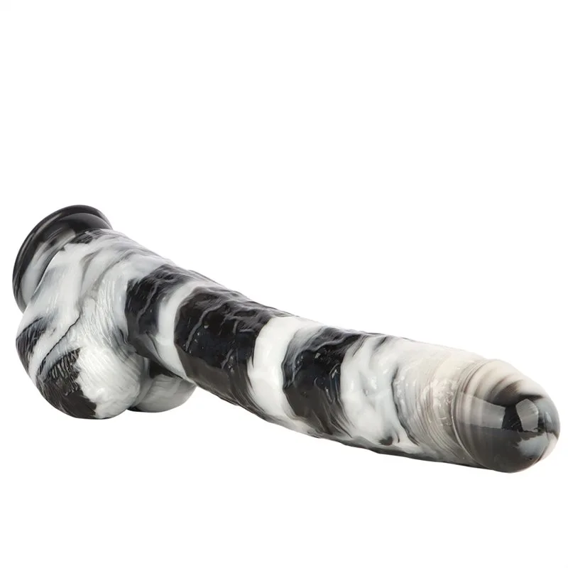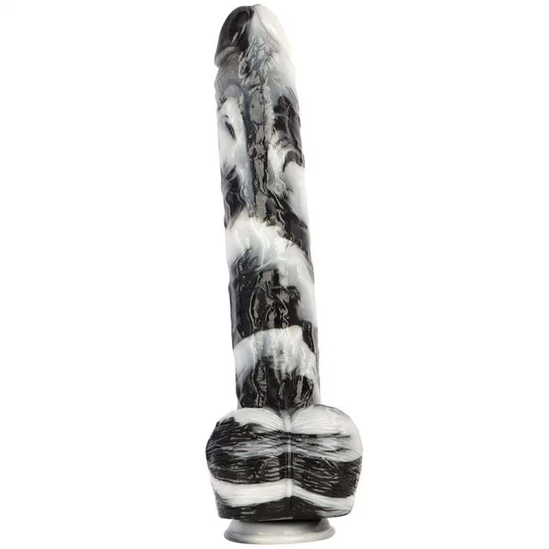 15.5 Inch Extra Long 2.5 Inch Thickness Massive Black-and-White PVC Dildo