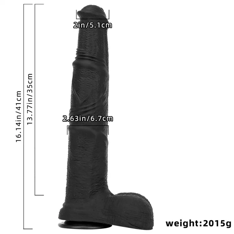 16 Inch Oversized Black Horse Dildo Liquid Silicone Animal Penis