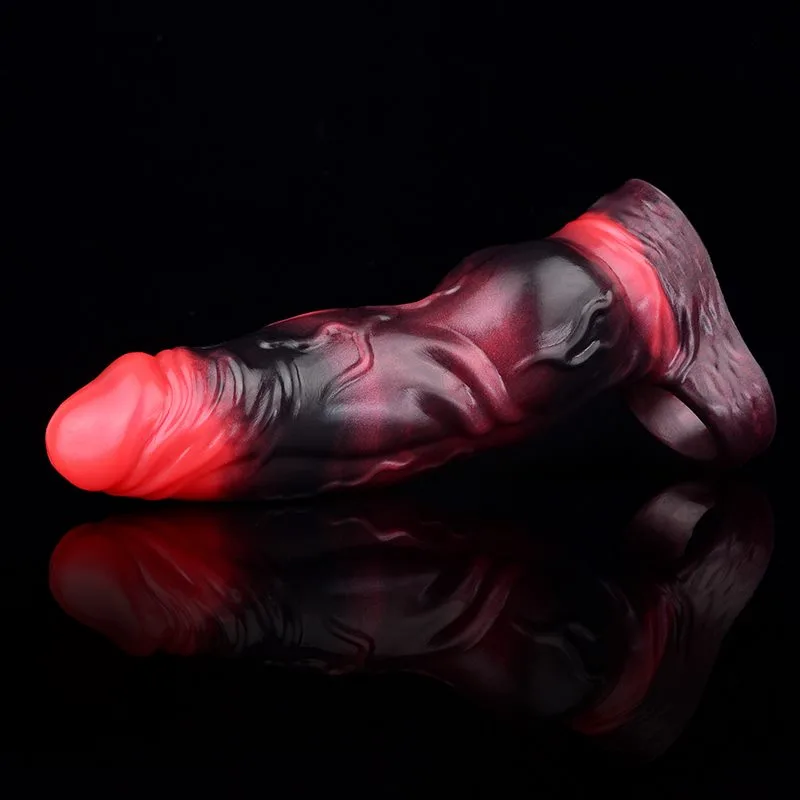 7 IN Vibrating Knot Sleeve Fantasy Silicone Dog Cock Sheath