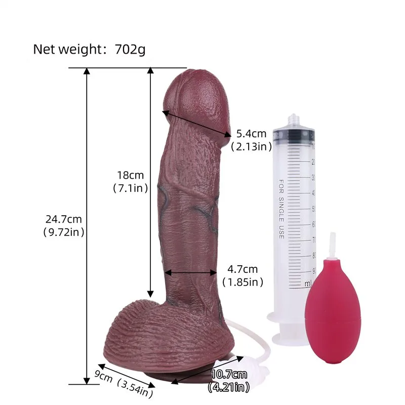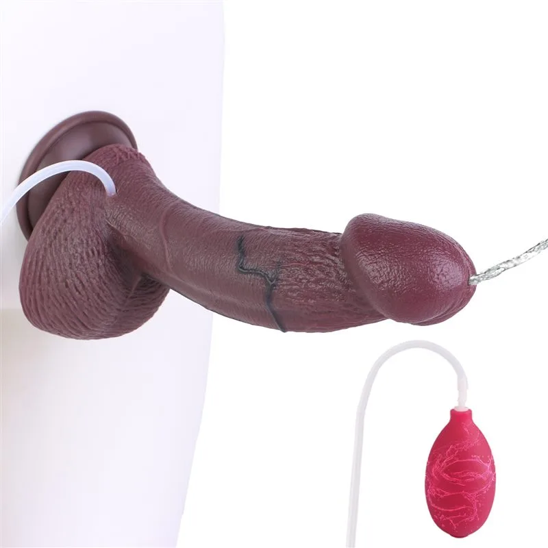9.7 Inch Black Big Head Real Life Like Silicone Ejaculating Dildo