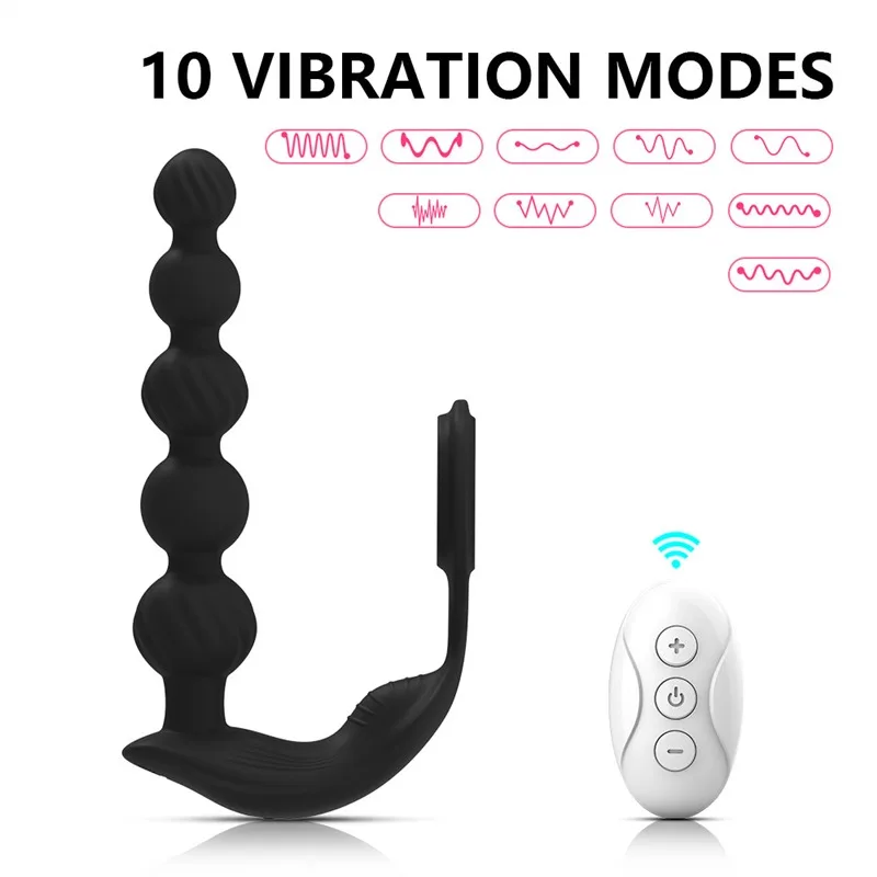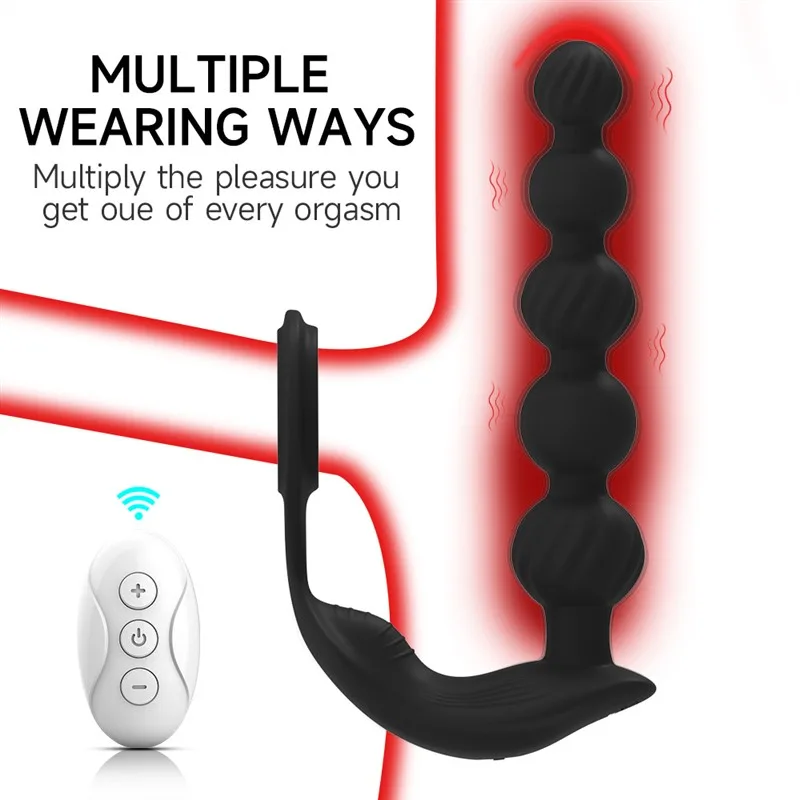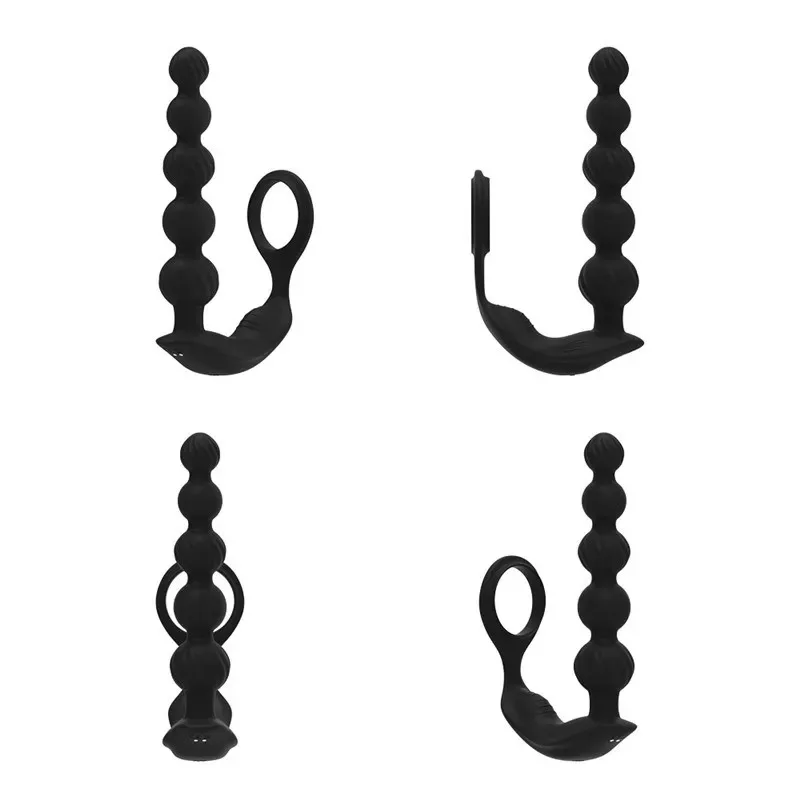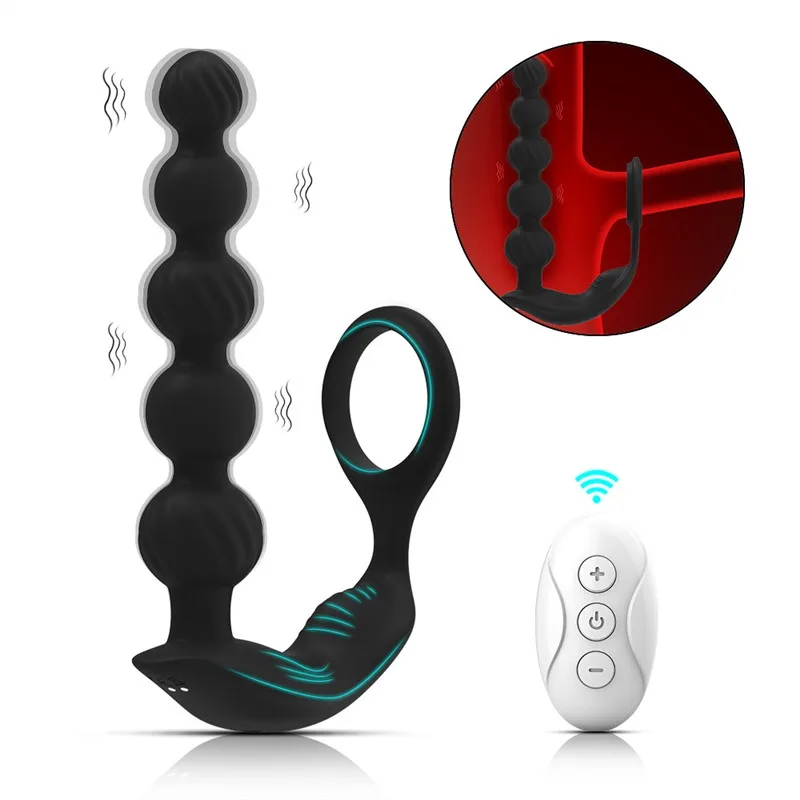 Remote Control Silicone Men Vibrating Anal Beads with Penis Ring