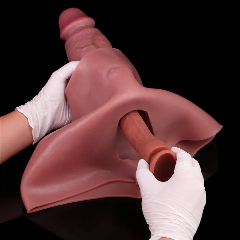 Wearable Big Fat Hollow Dildo Sleeve Silicone Realistic Penis Pant
